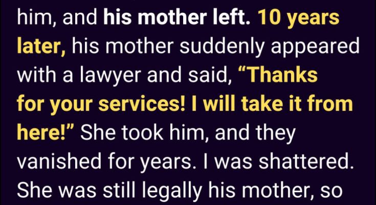 When he was twelve, his mother returned with a lawyer and reclaimed custody. I begged her to let him choose, but the law didn’t bend. I’ll never forget his tears as they drove away. After that, there was only silence. No calls. No letters. I kept his room the same and baked a small cake every birthday, even when I ate it alone.