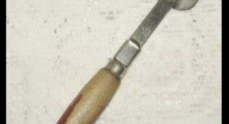 The primitive looking kitchen tool is a vintage can opener that left many scars on unskilled users who tried to free the contents of a can.